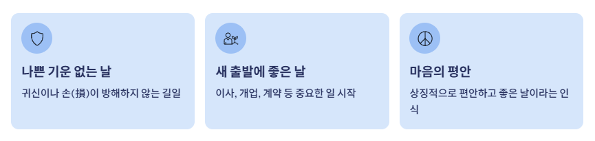 이 날은 귀신이나 손(損)이 사람의 일에 방해하지 않는다고 믿어,