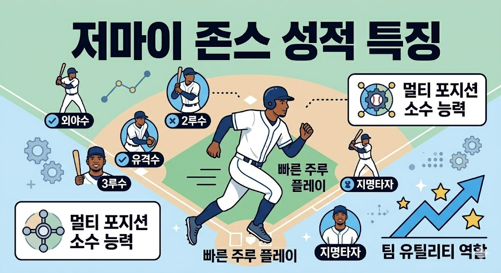 저마이 존스는 MLB에서 멀티 포지션을 소화하는 선수로 평가받고 있습니다.