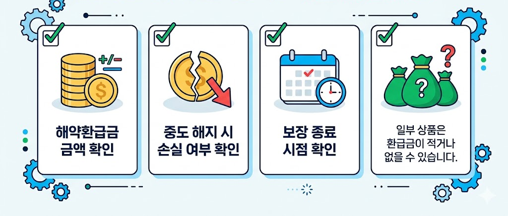 특히 일부 상품은 중도 해지 시 환급금이 적거나 없을 수 있으니 반드시 확인해야 합니다.