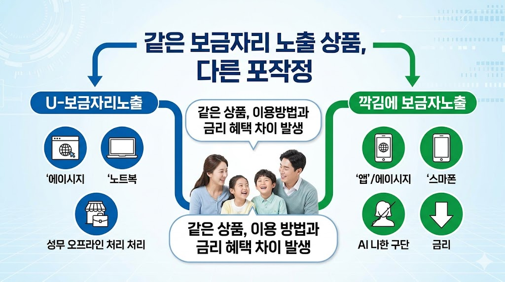 두 상품은 모두 같은 보금자리론이지만 신청 방식과 처리 구조가 다릅니다.