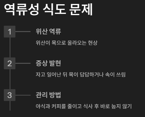 특히 자고 일어난 뒤 목이 답답하거나, 속이 쓰린 느낌이 함께 있다면 이 가능성을 의심해볼 만합니다.