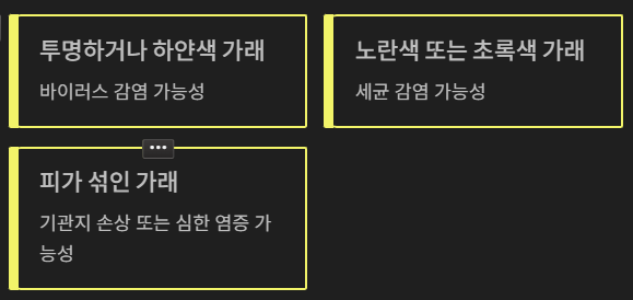 Q. 가래 색이 노랗거나 초록색이면 어떤 상태인가요?