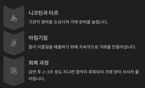 금연 후 2~3주 정도 지나면 점막이 회복되어 양이 서서히 줄어듭니다.