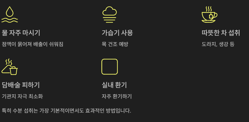 - 가습기 사용 → 목 건조 예방
