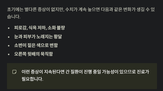 이런 증상이 지속된다면 간 질환이 진행 중일 가능성이 있으므로 진료가 필요합니다.