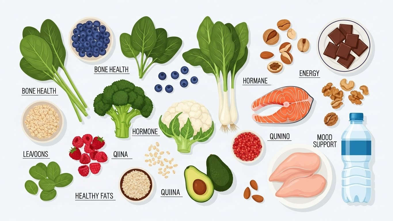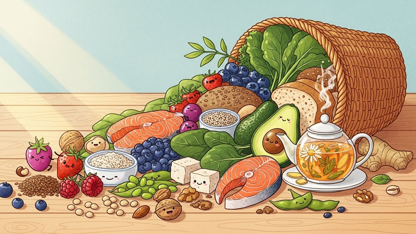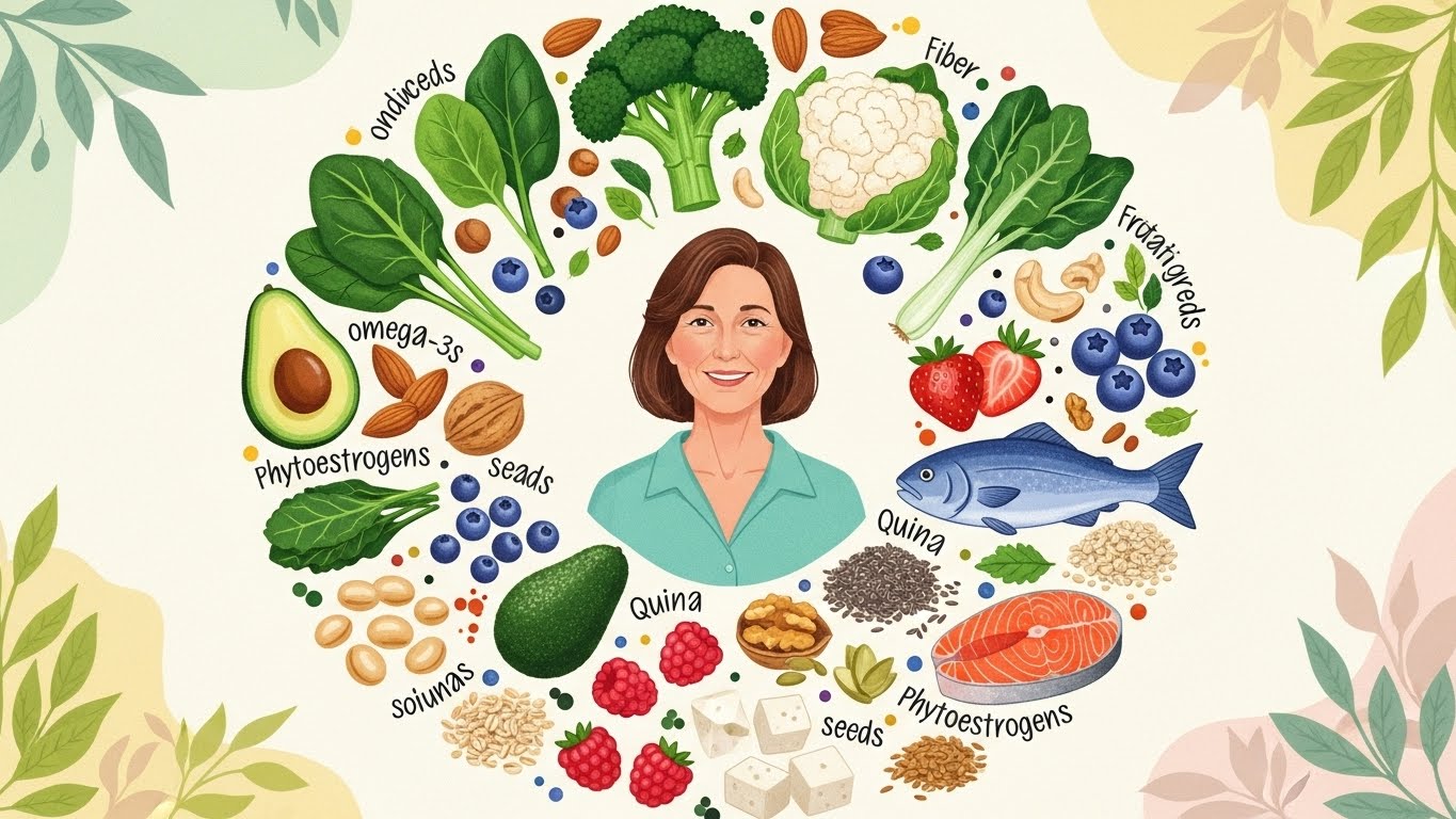 A. 콩, 두부, 석류, 연어, 시금치 등이 갱년기 증상 완화에 특히 좋습니다. 호르몬 균형을 돕고 피로를 줄여줍니다.