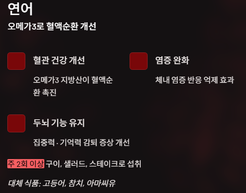 비슷한 효능을 가진 음식으로는 고등어, 참치, 아마씨유 등이 있습니다.