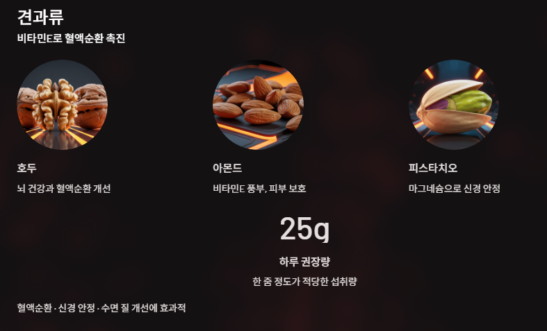 견과류 — 비타민E로 혈액순환 촉진