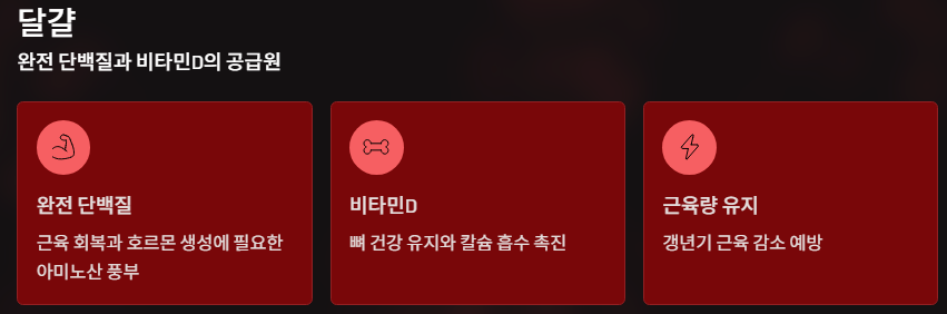 달걀은 완전 단백질 식품으로, 근육 회복과 호르몬 생성에 필요한 아미노산이 풍부합니다.