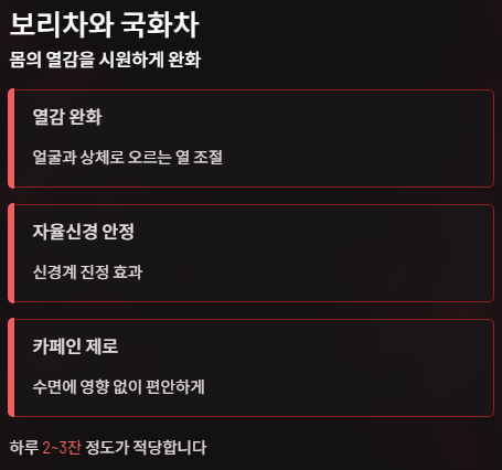 이때 보리차나 국화차는 몸을 시원하게 해주고 자율신경을 안정시켜줍니다.