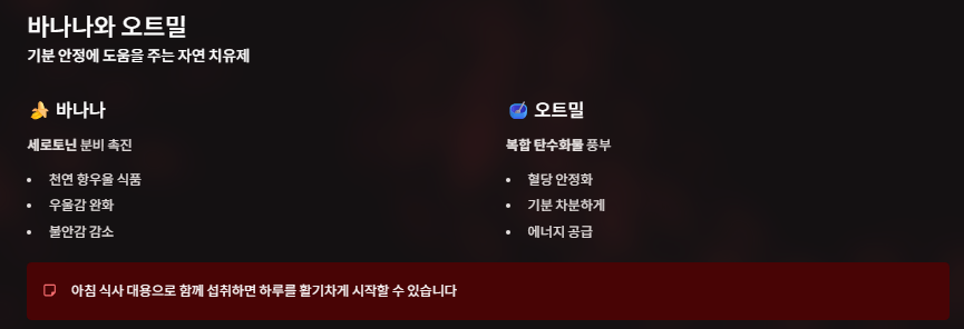 이때 세로토닌 분비를 돕는 바나나와 오트밀이 큰 도움이 됩니다.