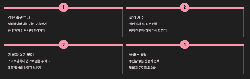 무리하지 않게 꾸준히 실천하는 것이 핵심이며, 일상 속 작은 걸음이 큰 변화를 만듭니다.