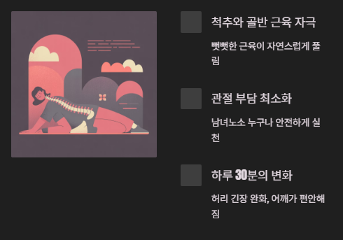 척추와 골반 주변의 근육을 자연스럽게 자극해 뻣뻣했던 근육이 풀리며, 자세가 안정됩니다.