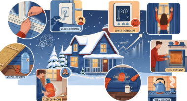 A. 창문 단열, 보일러 온도 조절, 전기장판 활용, 대기전력 차단, 커튼·러그 사용 등으로 실내 온도를 유지하면서 에너지를 절약할 수 있습니다.