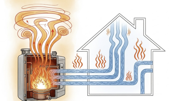 - 온돌 난방은 바닥에 흐르는 온수 온도를 조절해 따뜻함을 유지합니다.