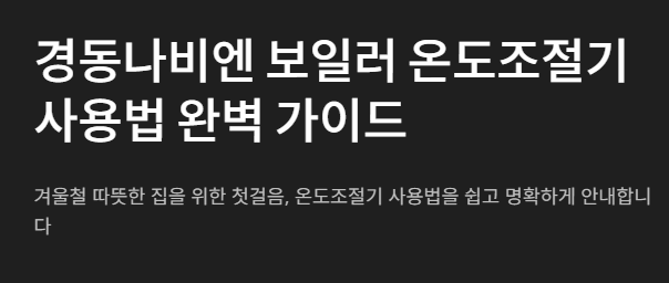 한겨울에도 따뜻하고 안전한 집, 경동나비엔 조절기 사용법으로 완성해보세요.