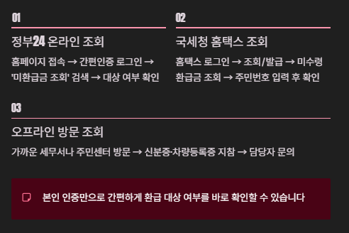 - ‘조회/발급 → 미수령 환급금 조회’ 클릭