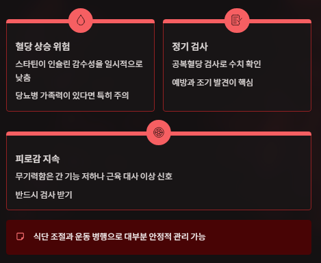 3. 정기적인 혈액 검사(간 기능, 근육 효소, 혈당)