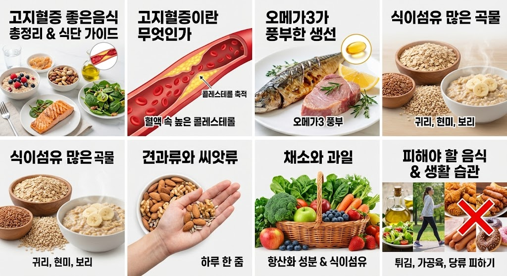 건강검진에서 콜레스테롤 수치가 높게 나오면 걱정이 앞섭니다. 약을 먹어야 하나 고민되기도 하고, 식단을 어떻게 바꿔야 할지 막막하기도 합니다. 고지혈증 좋은음식을 제대로 알고 꾸준히 실천하면 수치 관리에 큰 도움이 됩니다. 오늘은 고지혈증에 도움이 되는 음식과 피해야 할 식습관을 쉽게 정리해보겠습니다.