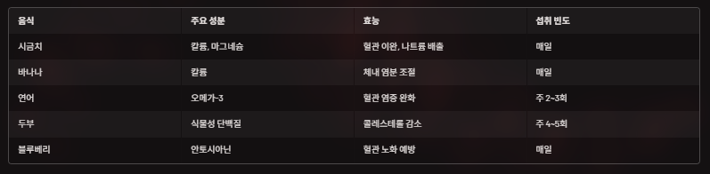 | 음식 종류 | 주요 성분 | 효능 |