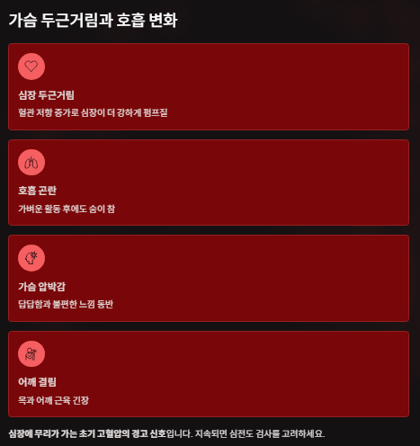 | 가슴 두근거림 | 심장 부담 증가 | 심전도 검사 고려 |