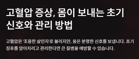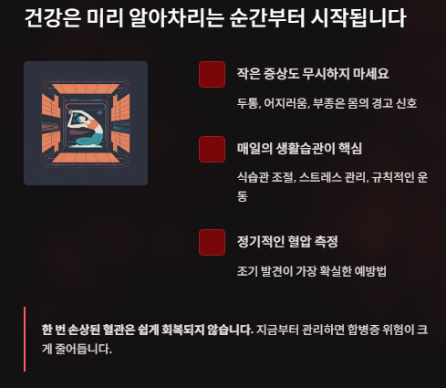 고혈압은 조기 발견이 곧 예방이며, 미리 관리할수록 합병증의 위험이 크게 줄어듭니다.