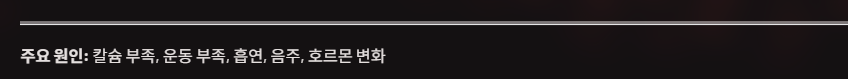 특히 칼슘 부족, 운동 부족, 흡연, 음주, 호르몬 변화 등이 주요 원인으로 꼽힙니다.