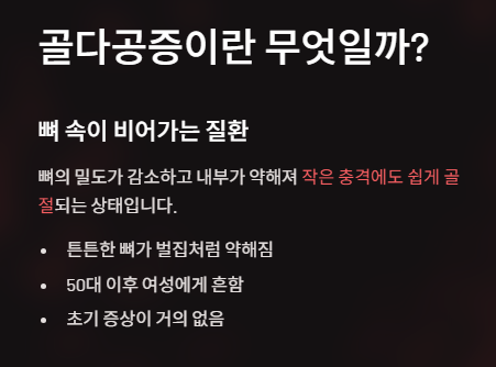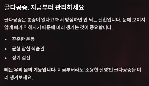 지금부터라도 ‘조용한 질병’인 골다공증을 미리 챙겨보세요.