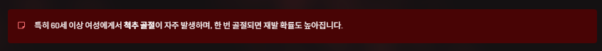 - 엉덩이·손목 골절: 일상 중 가벼운 충돌에도 골절 발생