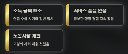 셋째, 고령화 사회에서 지속 가능한 노동시장 구조 개편의 첫걸음이 될 수 있다.