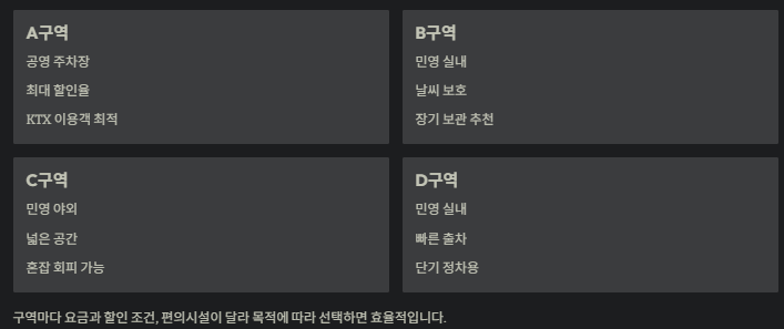 광명역 주차장은 네 구역이 모두 운영 주체와 구조가 달라, 자신의 이용 목적에 따라 선택하는 것이 중요합니다.