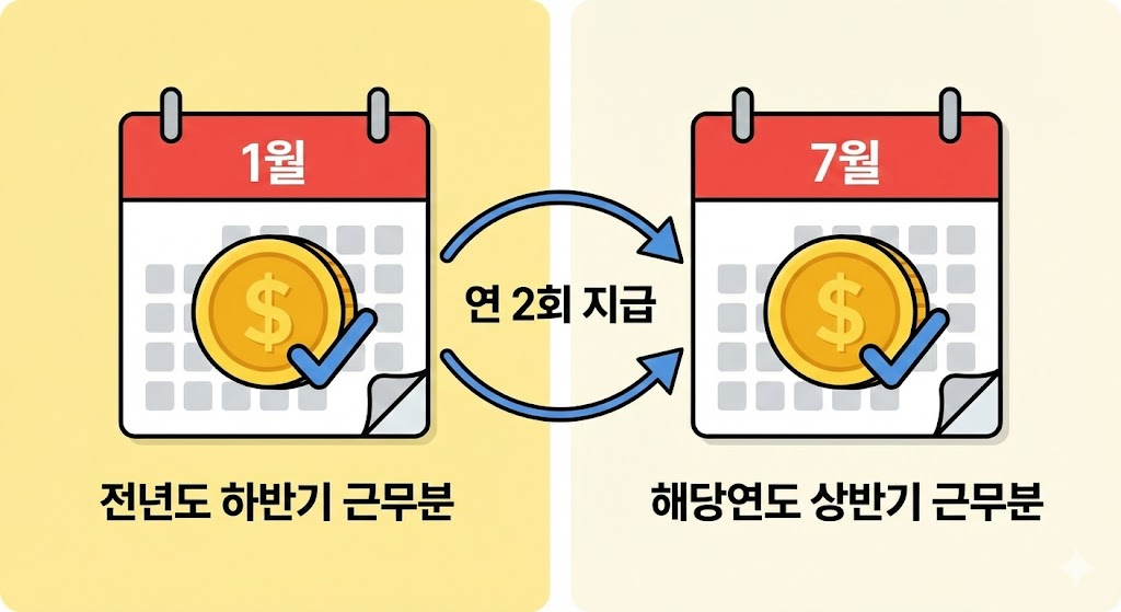 매년 1월과 7월, 연 2회에 걸쳐 지급됩니다.