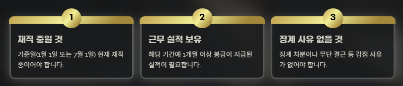 - 기준일(1월 1일 또는 7월 1일) 현재 재직 중일 것