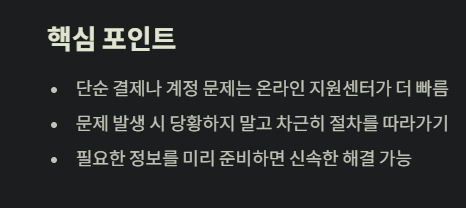 이번 글을 정리하면서, 단순한 결제나 계정 문제는 온라인 지원센터가 훨씬 빠르다는 점을 다시 느꼈습니다.