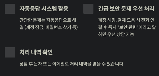 - 긴급 보안 관련 문제(계정 해킹, 결제 도용)는 전화 연결 후 즉시 “보안 관련”이라고 말하면 우선 상담이 가능합니다.