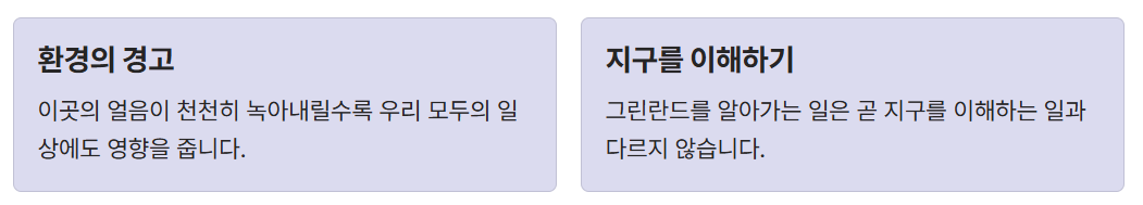 그린란드는 단순히 큰 섬이 아니라 지구 환경 변화의 바로미터로 불릴 만큼 중요한 지역이에요.