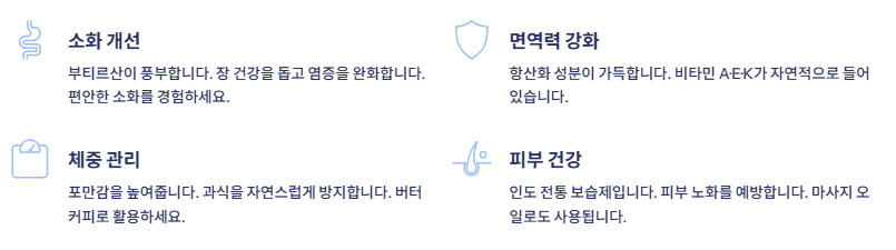 → 항산화 성분이 풍부하며, 비타민 A·E·K가 자연적으로 함유되어 있습니다. - 체중 관리 효과