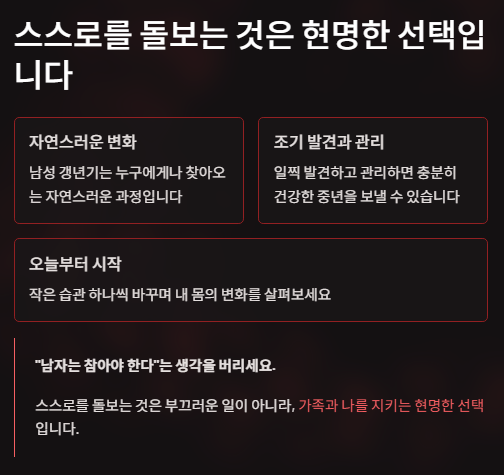 남성 갱년기는 누구에게나 자연스럽게 찾아오는 변화입니다.