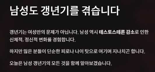 남성 역시 나이가 들면 호르몬 변화로 인한 갱년기 증상을 겪게 됩니다.