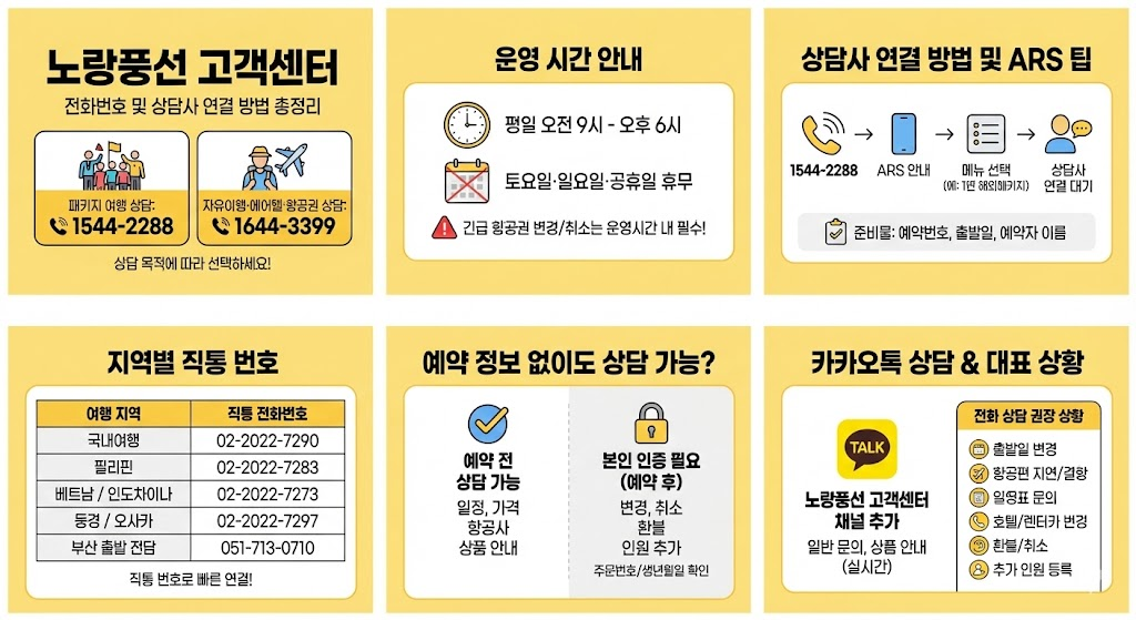 해외여행이나 국내여행을 준비하다 보면 변경, 취소, 일정 문의 등 다양한 상황에서 노랑풍선 고객센터 상담사와 직접 통화해야 할 일이 생기죠. 특히 항공권, 패키지여행, 호텔 예약과 관련한 문의는 빠른 답변이 중요합니다. 이번 글에서는 노랑풍선 고객센터 전화번호와 상담사 연결 방법, 운영시간, 빠른 연결 팁까지 한눈에 확인할 수 있도록 정리했습니다.