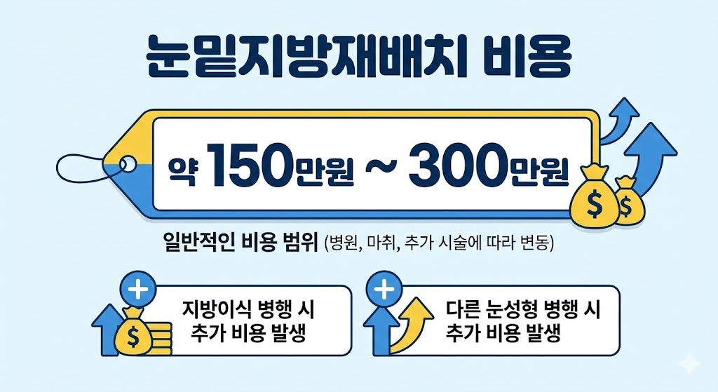 눈밑 지 방재배치 비용은 병원과 의료진, 추가 시술 여부에 따라 달라집니다. 일반적으로 150만원에서 300만원 사이에서 형성되는 경우가 많습니다.