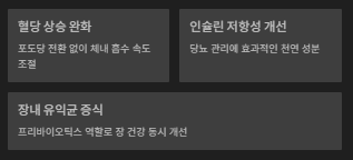 주요 효능 혈당 조절, 장 건강 개선 에너지 공급 중심
