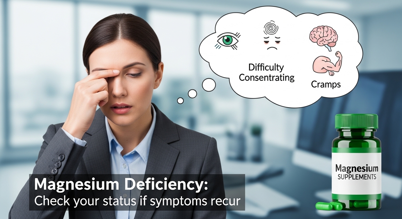 모자라면 눈떨림, 피로감, 집중력 저하, 근육경련 등이 자주 발생할 수 있습니다. 특히 바쁜 직장인이나 식단이 불규칙한 경우, 이런 증상이 반복되면 마그네슘 상태를 점검해보는 것이 좋습니다. 자칫 방치하면 피로가 누적되며 일상에 영향을 미칠 수 있습니다.
