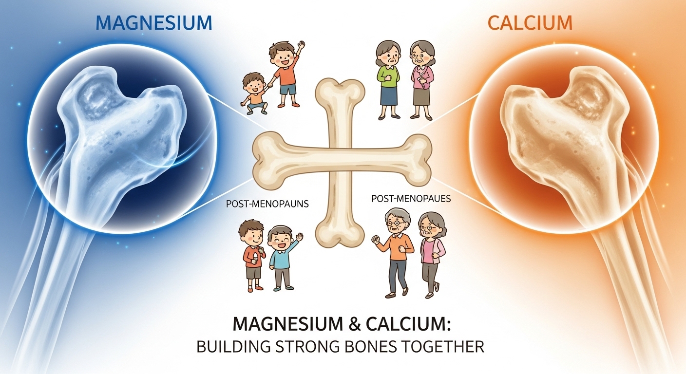 뼈를 구성하는 중요한 미네랄 중 하나로, 칼슘의 흡수를 도와줍니다. 칼슘과 함께 작용해야 뼈가 튼튼해지므로, 두 성분을 동시에 챙기는 것이 좋습니다. 특히 성장기 아이들과 갱년기 이후 골밀도가 떨어지기 쉬운 사람들에게 유익합니다. 건강한 골격 유지를 위해선 마그네슘의 역할을 간과해서는 안 됩니다.