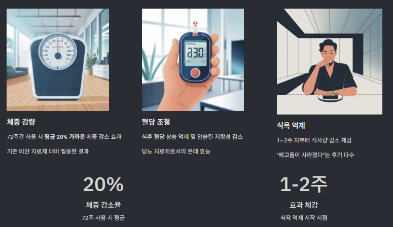 | 주요 효과 | 체중 감량, 혈당 조절 |