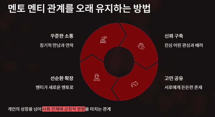 이처럼 멘토 Mentee 관계는 서로에게 도움을 주며 함께 발전할 수 있는 특별한 구조입니다.