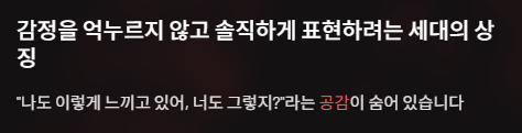 오히려 마음을 억누르지 않고 솔직하게 표현하려는 세대의 상징이에요.