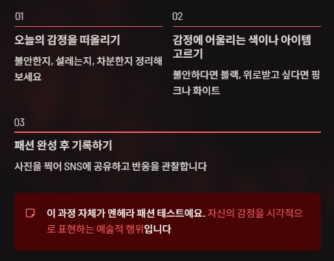 - 패션 테스트 → 감정을 옷으로 드러내는 실험