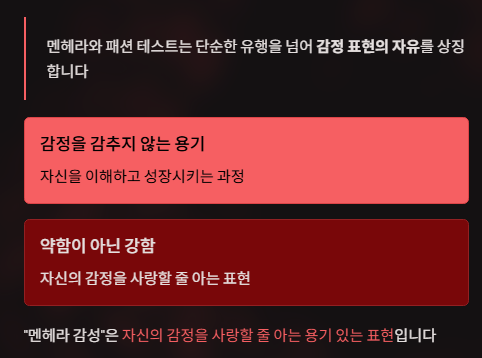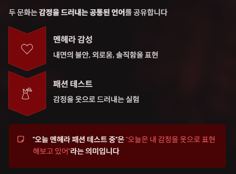 멘헤라는 내면의 감정을 표현하고, 패션 테스트는 그것을 외형으로 보여주는 행위죠.