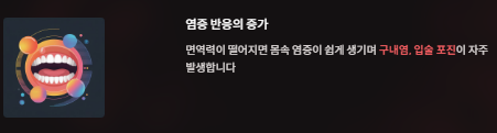 | 구내염·피부 트러블 | 염증 반응 증가 | 항산화 식품 섭취 |